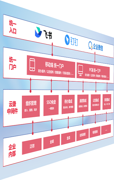 对协作平台提供支持服务,,,支持企业应用与协作平台对接,,,,包含组织同步、、、消息集成、、、、待办集成等。。支持目前主流的协作平台:钉钉、、、、企微和飞书。。。。